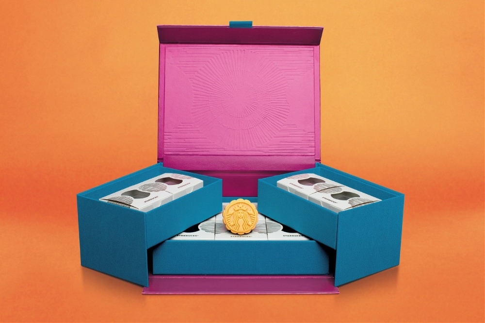 如果說百威英博本身的品牌色系已然賦予它更多可能,那么星巴克面向中國市場推出的2018月餅禮盒,則提供了另一個(gè)獨(dú)特視角。在這個(gè)案例中,星巴克的logo圖形被保留,但你看不到熟悉的黑白綠配色。引人注目的調(diào)色板打破了傳統(tǒng)設(shè)計(jì)規(guī)范,既艷麗又和諧,有國際品牌的調(diào)性,也不失中華文化講究的富貴團(tuán)圓。月餅吃完之后,包裝本身被珍惜和留存使用的概率也極大提升,長期占據(jù)一隅屋角,在用戶心中不斷刻畫星巴克的模樣。